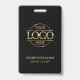 Enhance your professional image with this Black Employee ID. This sleek badge features a custom gold logo, name, and title for a polished look. Perfect for businesses seeking a stylish and cohesive identity.