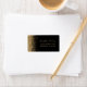 The left-hand edge of this elegant modern wedding RSVP self-address label features a gold faux glitter border. The customizable text features your names in gold-coloured handwriting script and your address in copperplate font on a black background.
