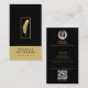 An elegant combination of black with a gold feather, this sleek notary business card is an easy to edit business card template that is easy to customize. Simply edit the text, QR code, and photo and your way to branding yourself in style! Features a black background and a gold-toned feather with a frame.