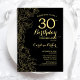 Black Gold Floral 30th Birthday Party Invitation. Design moderne minimaliste avec accents de dessin botanique, fausse feuille d'or et police de script de typographie. Carte invitation simple et tendance, parfaite pour une célébration anniversaire élégante. Peut être customisé à n'importe quel âge. Invitations Zazzle imprimées ou téléchargement instantané modèle imprimable numérique.
