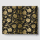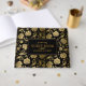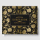 Gold Elegant floral damasks pattern over a black background. Customizable wedding guestbook template.