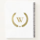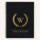 BLACK GOLD FLORAL LAUREL WREATH INITIAL MONOGRAM NOTEBOOK