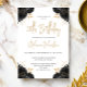 This elegant 50th birthday party invitation features black roses with faux gold foil foliage in four corners on a white background. The words "50th Birthday" and the name of the guest of honor appear in trendy gold-colored modern handwriting script. Add the details in charcoal gray sans serif font.