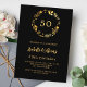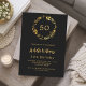 Black background. A golden floral wreath. Personalize and add your name, age and party details.