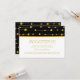 Black, gold foil beads and stripe modern wedding reception card featuring a pattern of string with gold foil balls with metallic shine on the top that look like beads on rope and a golden stripe on black background and your deteails on white. This elegant and stylish wedding template design is fully customizable and is perfect for a contemporary wedding. Note that THERE IS NOT REAL GOLD FOIL JUST PRINTED IMAGES.