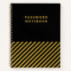 Another stylish password book by JessicaAmber! Keep track of your usernames, email addresses and passwords in one easy location. This black notebook features faux gold foil stripes and a sans serif title that says 'password notebook'. A great gift for your forgetful friends. ••• Art by JessicaAmber. Uploaded 28 Nov 2022. ••• For more useful notebooks, visit my store Zazzle.com/JessicaAmberArtist ••• For custom orders, message me on Zazzle