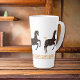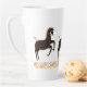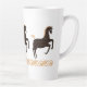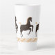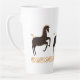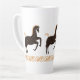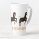 Here's an attractive latte mug with a Nordic style folk art horse image repeated around the perimeter. The prancing horse is black with gold spots, and a gold mane and tail. At the bottom of the mug is a decorative line border in matching gold. Ideal for anyone who loves folk art or horses!