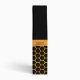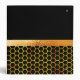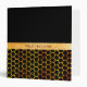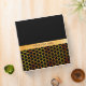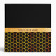 Elegant black colour as background. Faux gold hexagon, geometrical pattern, and a golden band. With a templates for your text on front and the spine. Brown coloured letters.