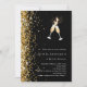 For a Bridal Shower. A black background. Decorated with faux gold glitter and a pair of flutes. Personalize and add a name and party details.