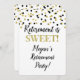 Custom Retirement party invitations in black and gold glitter confetti pattern. Add your name and party details for a unique and stylish retirement party invitation.