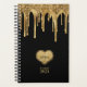 Start the new year right with this glammed up planner for 2021. Dripping gold paint and gold glitter with a gold glitter heart on a black background makes an elegant statement. Add you monogram and name to make it your own