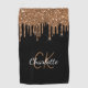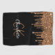 A black background decorated with faux golden glitter drips, paint dripping look. Personalize and add a name, your monogram initials. The name is written with a hand lettered style script.