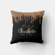 Black gold glitter drips monogram name throw pillow