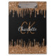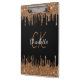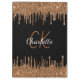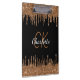 A classic black background with faux dark gold glitter drips, paint dripping look. Personalize and add a name and monogram initials. The name is written with a modern hand lettered style script. White and golden letters.