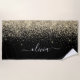 Black Gold Glitter Girly Monogram Name Beach Towel