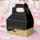 Black and gold glitter guitar wedding favour box. Personalize it by adding the bride and groom's name and wedding anniversary date. Great for music lovers or guitarists. Use as a gift box for all of your wedding guests.