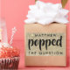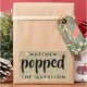 **Please note that this is not printed with real glitter. The Glitter is a graphic image.** He Popped the Question Welcome Bag Sticker in Black and Gold. Adhere this sticker to a bag of freshly popped popcorn, bottle of champagne or more to celebrate a wedding or an engagement!