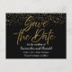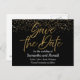 Black & Gold Glitter Save The Date Wedding Announcement Postcard