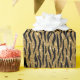 This gift wrapping paper features a black and gold glitter tiger fur pattern.