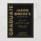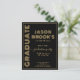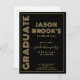 Black and gold graduation invitations with unique gold typography, gold frame, and script type. Suitable for college or high school graduate.