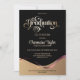 This black and gold graduation party invitation is the perfect way to invite your friends and loved ones to join you in celebrating your graduation. The user friendly text template allows you to effortlessly include all the important details. This contemporary invitation is the epitome of modern sophistication and will set the tone for an evening of celebration for the graduate’s achievements.