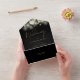 All in one black and gold wedding invitation featuring botanical greenery, string lights and elegant typography. The invitation includes a perforated RSVP card with your wedding website QR code and details. Designed by Thisisnotme©