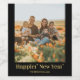 Celebrate the season with this stylish holiday photo wine label. This design features stylish gold lettering "Happier New Year" with custom text on a black background. You can personalize the text and insert your photo. More holiday gift designs are available at my shop BaraBomDesign.