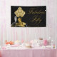 Womans 50th birthday party banner with pretty gold high heel shoes, balloons, pearls and champagne with elegant Fabulous Fifty script on a black and gold background. You can easily customize this elegant black and gold 50th birthday banner for your event by adding text in the font style of your choice. You can also change the background colour.