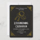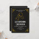 Elegant black and gold housewarming invitation featuring a luxurious key and home illustration on a textured dark background. Perfect for stylish new home celebrations, this design combines classic elegance with a modern touch.