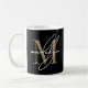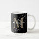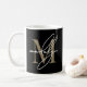 Personalized Modern Glamorous Black Gold Initial Name Monogram Coffee Mug. This stylish mug combines a modern minimalist vibe with a glamorous, personal touch, perfect for any coffee or tea lover. Featuring a bold gold initial (in a warm, flat brown hue with no shimmer) on a sleek black background and a classic white script name, the luxury monogram appears on both sides for a standout look from every angle. With a chic and sophisticated feel, this mug makes an ideal gift for birthdays, housewarmings, holidays, or just because. It’s also a great choice for adding a glamorous touch to your morning coffee routine.
