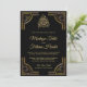 Amaze your guests with this Arabian theme wedding invitation featuring an elegant ornate border and 'Bismillah' in Arabic calligraphy against a black background. Simply add your event details on this easy-to-use template to make it a one-of-a-kind invitation. Flip the card over to reveal a beautiful gold triangles pattern on the back of the card. This invitation is fully customizable. All texts are editable and background colour can be easily changed to what best fits you.