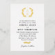 Elegant wedding invitation in a gold foil and black typography design with a laurel wreath monogram and beautiful fonts. Typography wedding invitation with a greenery monogram and beautiful fonts. Monogrammed gold foil wedding invitation with a stylish typography design and greenery.