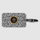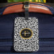 A black and white leopard animal print pattern with a gold and black elegant monogram decorates this luggage tag. Personalize it for yourself or for a gift! Designed for you by Blackberry Boulevard.