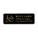 Luxurious gold calligraphy reading "Love" with a graceful flourish stands out against a dramatic black background on this elegant wedding return address label. The family name and address appear in refined gold capital letters for a glamourous finishing touch. All text is easy to customize.