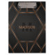A cool luxurious style abstract clipboard featuring black and gold geometric design. Personalize with your monogram and name.