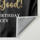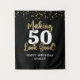 Black Gold Making AGE Look Good Name Confetti Tapestry Backdrop Sign. Celebrate any age birthday for her or him with this elegant, custom colour personalized tapestry sign or photo op backdrop personalized featuring the editable age title MAKING "AGE" LOOK GOOD with faux metallic gold foil modern script typography and confetti and name or your custom text (shown with HAPPY BIRTHDAY NAME) in your choice of background colour (shown in black) to coordinate with your party theme colours. ASSISTANCE: For help with design modification, transferring the design to another product or for coordinating items, contact the designer BEFORE ORDERING via the Zazzle Chat MESSAGE tab below or email makeitaboutyoustore@gmail.com.