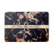 Personalize black name and gold monogram on large gold stripe on black and gold marble. Version 2.
