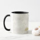 Elegant black and gold marble monogram coffee mug designed for a modern, minimalist and luxurious look. This personalized mug features bold initial lettering paired with a refined gold script name, creating a clean and sophisticated design.