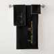 Black Gold Minimalist Script Signature Monogram Bath Towel Set