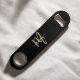 Add a touch of luxury and personalization to your bar setup with the Black and Gold Modern Script Girly Monogram Name Bar Key. Featuring a sleek black finish and a bold gold monogram in a modern script font, this bar key is the perfect blend of chic style and functionality. Whether you're hosting a gathering or simply enjoying a drink, this elegant tool makes opening bottles a sophisticated affair. The personalized monogram adds a unique and girly touch, making it a perfect gift or a stylish addition to your own barware collection.