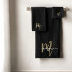 Wrap yourself in luxury with the Black and Gold Modern Script Girly Monogram Name Bath Towel Set. Featuring a sleek black design with a bold gold monogram in an elegant modern script font, this personalized towel set adds a sophisticated and stylish touch to any bathroom. Made from soft, absorbent fabric, these towels are both functional and fashionable, perfect for everyday use or as a thoughtful gift for someone special. Elevate your bathroom decor with this chic, monogrammed towel set that exudes timeless elegance.