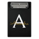 Black Gold Modern Script Girly Monogram Name Mini Clipboard