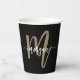 Black Gold Modern Script Girly Monogram Name Paper Cups