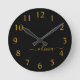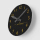 Black Gold Modern Script Girly Monogram Name Round Clock