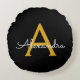 Black Gold Modern Script Girly Monogram Name Round Pillow