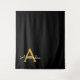 Black Gold Modern Script Girly Monogram Name Tapestry