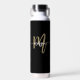 Black Gold Modern Script Girly Monogram Name Water Bottle