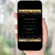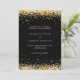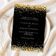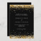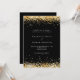 A modern wedding invitation. Black background decorated with faux gold confetti. Personalize and add your names and wedding details. White coloured letters.