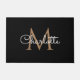 Chic black and gold monogram doormat. You can personalize the name, monogram and customize the font and colours to create your own unique design. Designed by Thisisnotme©