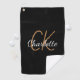 Black background, golden and white text. Personalize and add your monogram initials and name. The name is written with a modern hand lettered style script.